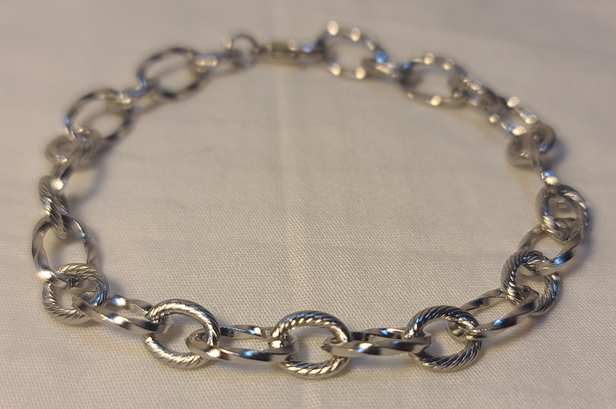 Everyday Silver-Tone Stainless Steel Textured Link Set, Necklace, Bracelet, Earrings