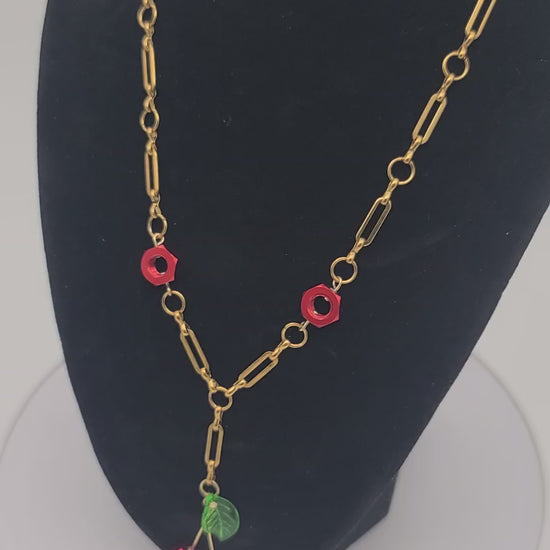 Bright, bold, and irresistibly sweet — the Beads & Bolts Cherry Hex Nut Necklace blends hardware with fruity, playful charm.