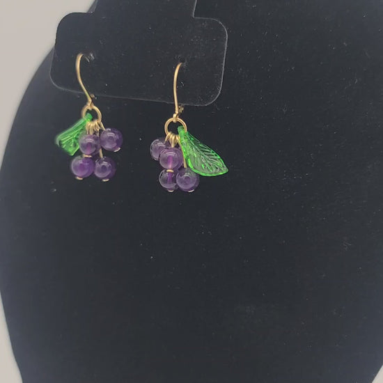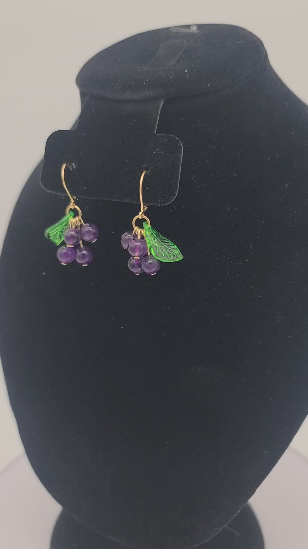 Featuring glossy purple glass beads and a vibrant acrylic green leaf, each charm is handmade for a fun, fruity pop of color.