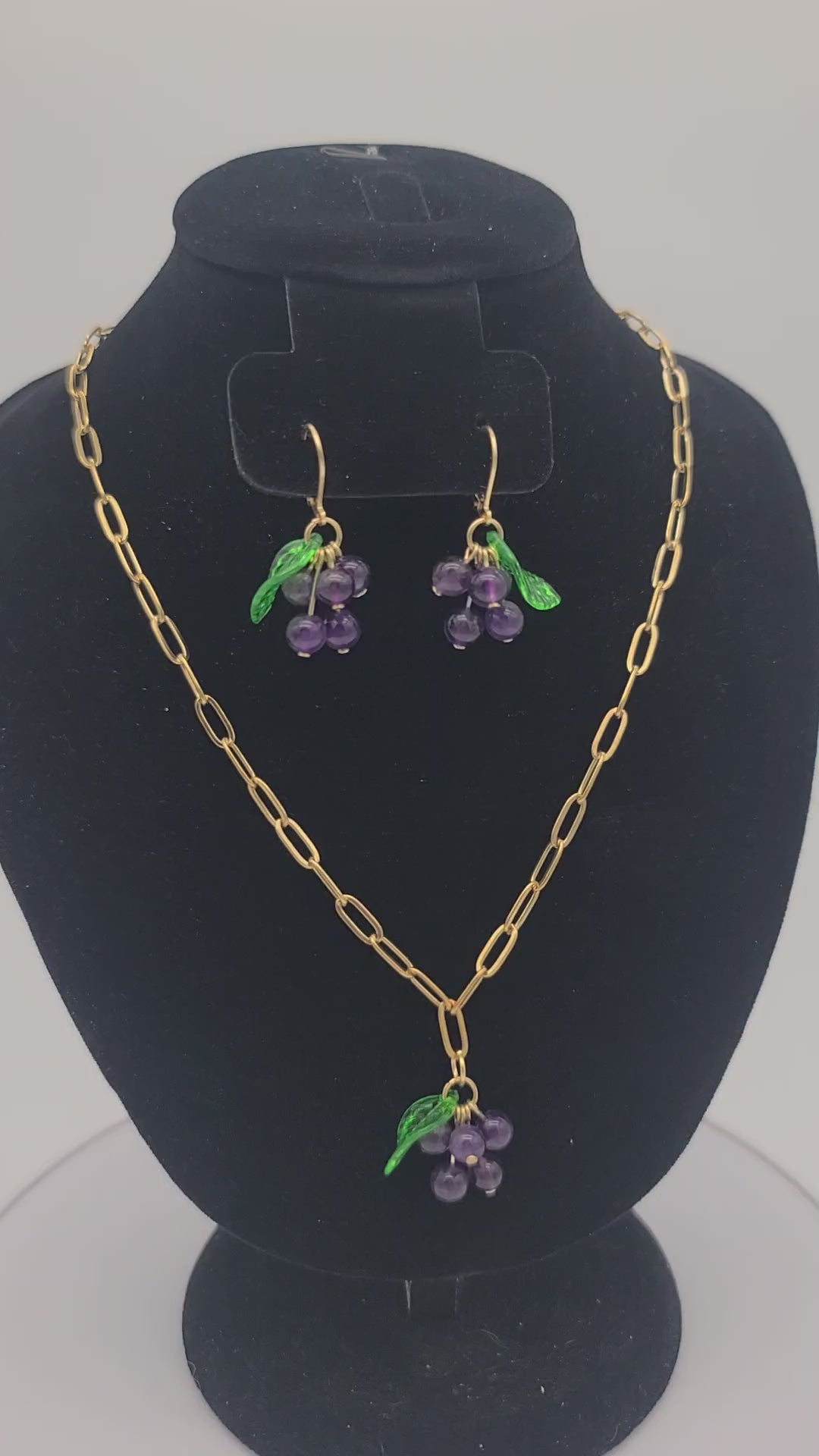 Grapes in the Golden Vineyard Necklace & Earrings Set
