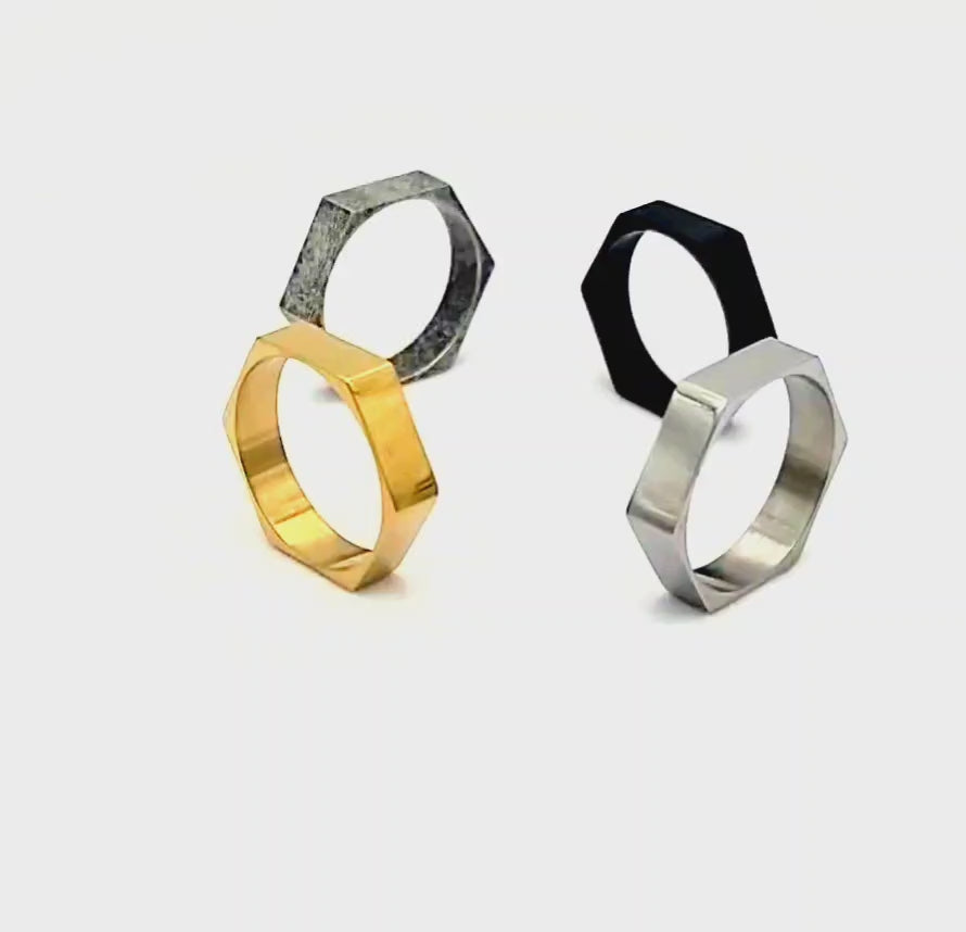 Modern Industrial Edge Stainless Steel Hex Ring