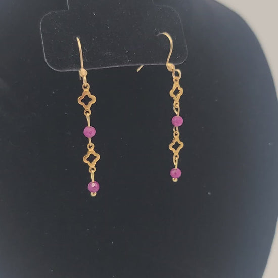 Red Ruby Radiance – Gold Stainless Steel Clover and Natural Ruby Earrings